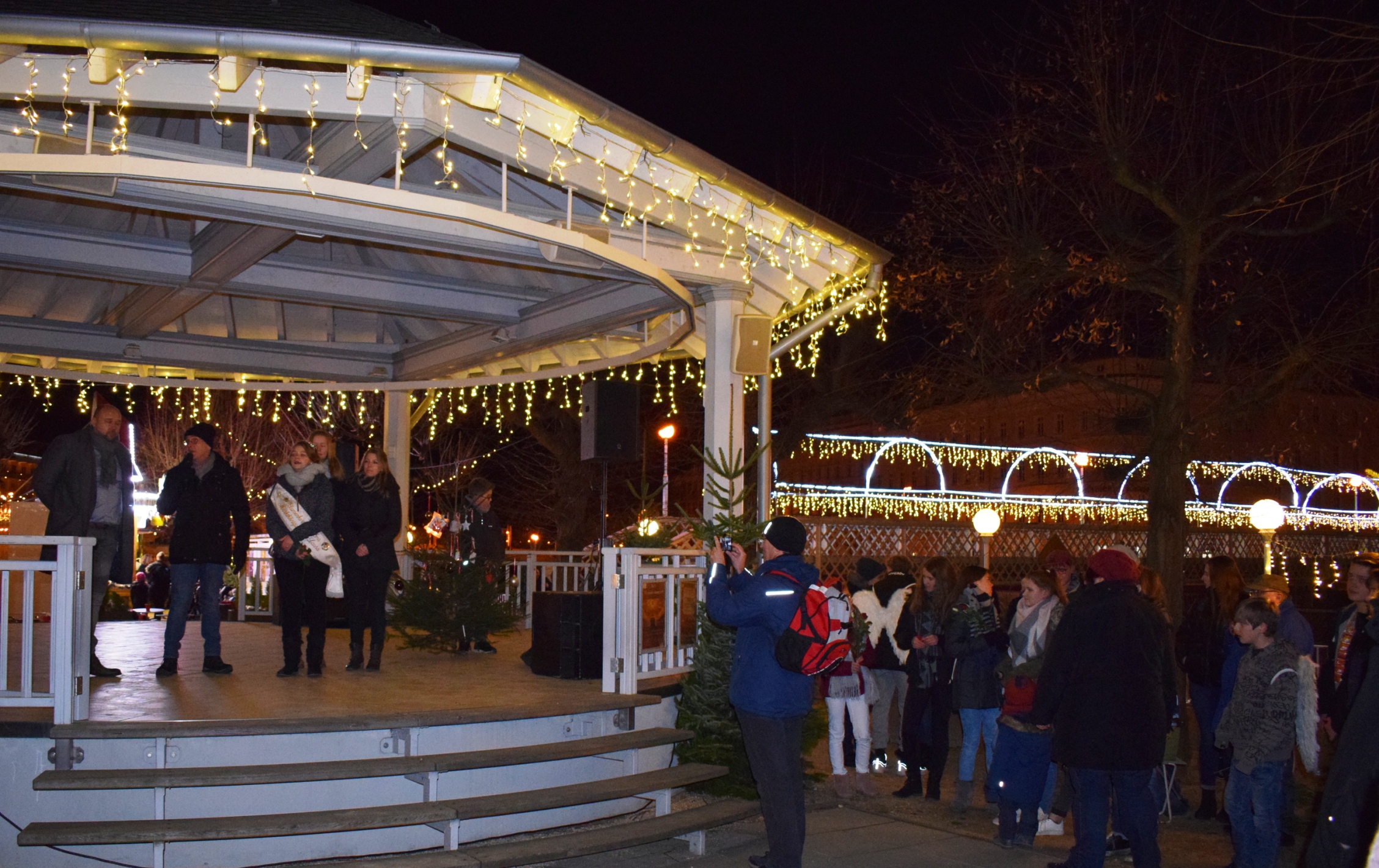 „Wir hätten noch etwas länger gebraucht, um diesen Bad Ems Weihnachtsbaum mehr zu verzieren“, sagte Pfarrerin Eva Lemaire im Gespräch mit Moderator Willi Willig vom Bartholomäusmarktverein, „aber vielleicht finden sich hier noch Menschen, die etwas daran hängen.“