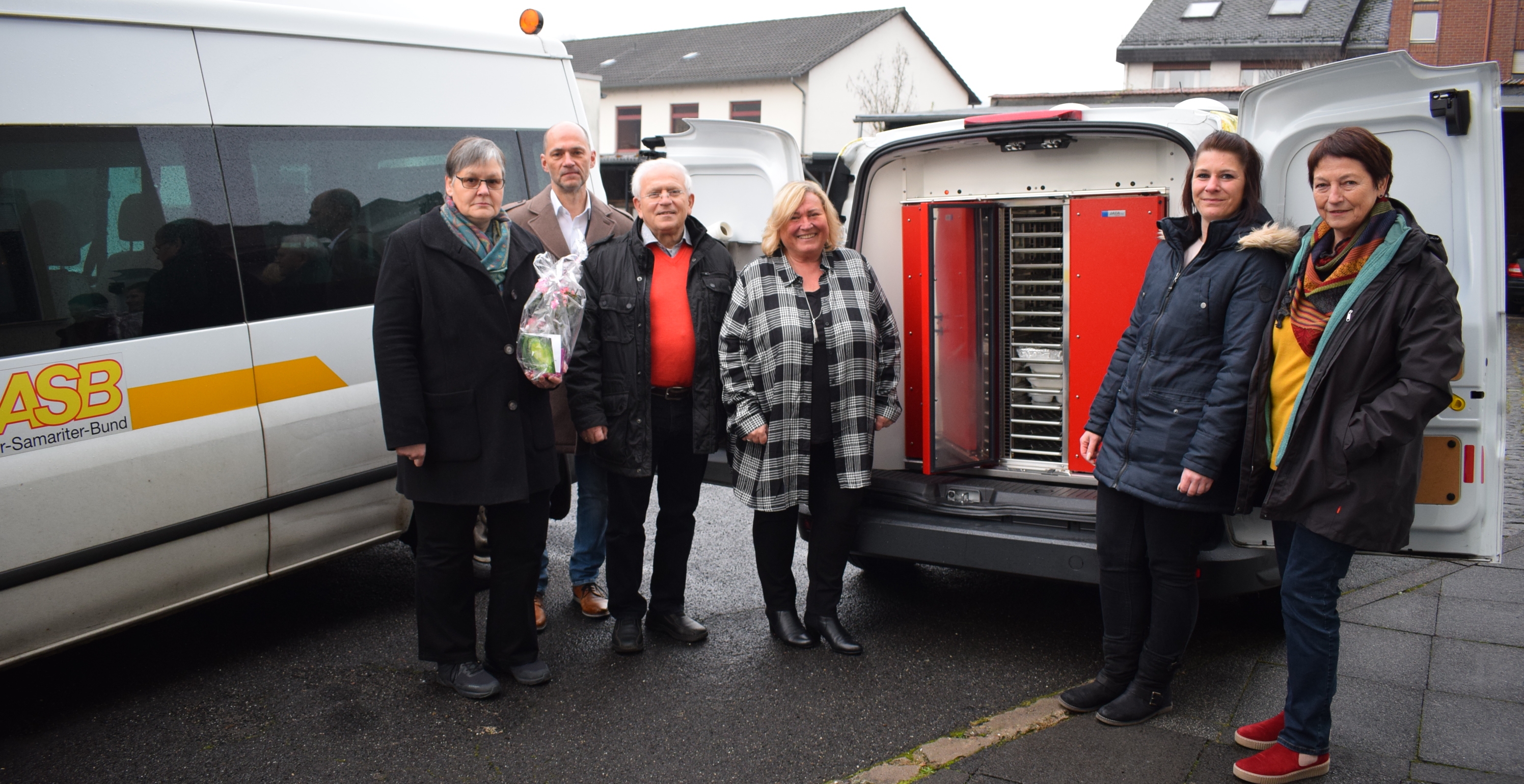 Der Beharrlichkeit und des Einsatzes der ehrenamtlich agierenden Mitglieder des Familienzentrums Bornich ist es zu verdanken, dass mit dem ASB in Bad Ems ein neuer Anbieter gefunden wurde, der ab diesem Jahr Essen auf Rädern in die Gemeinden liefert. Susanne Müller (links), Annegret Lenz (rechts) und Dieter Zorbach (3. von links) dankten ASB-Geschäftsführer Manuel Machwirth und den Mitarbeiterinnen Sabine Reuter und Sabine Hutny und bestaunten das dafür eingesetzte Liefer-Fahrzeug. Fotos: Matern