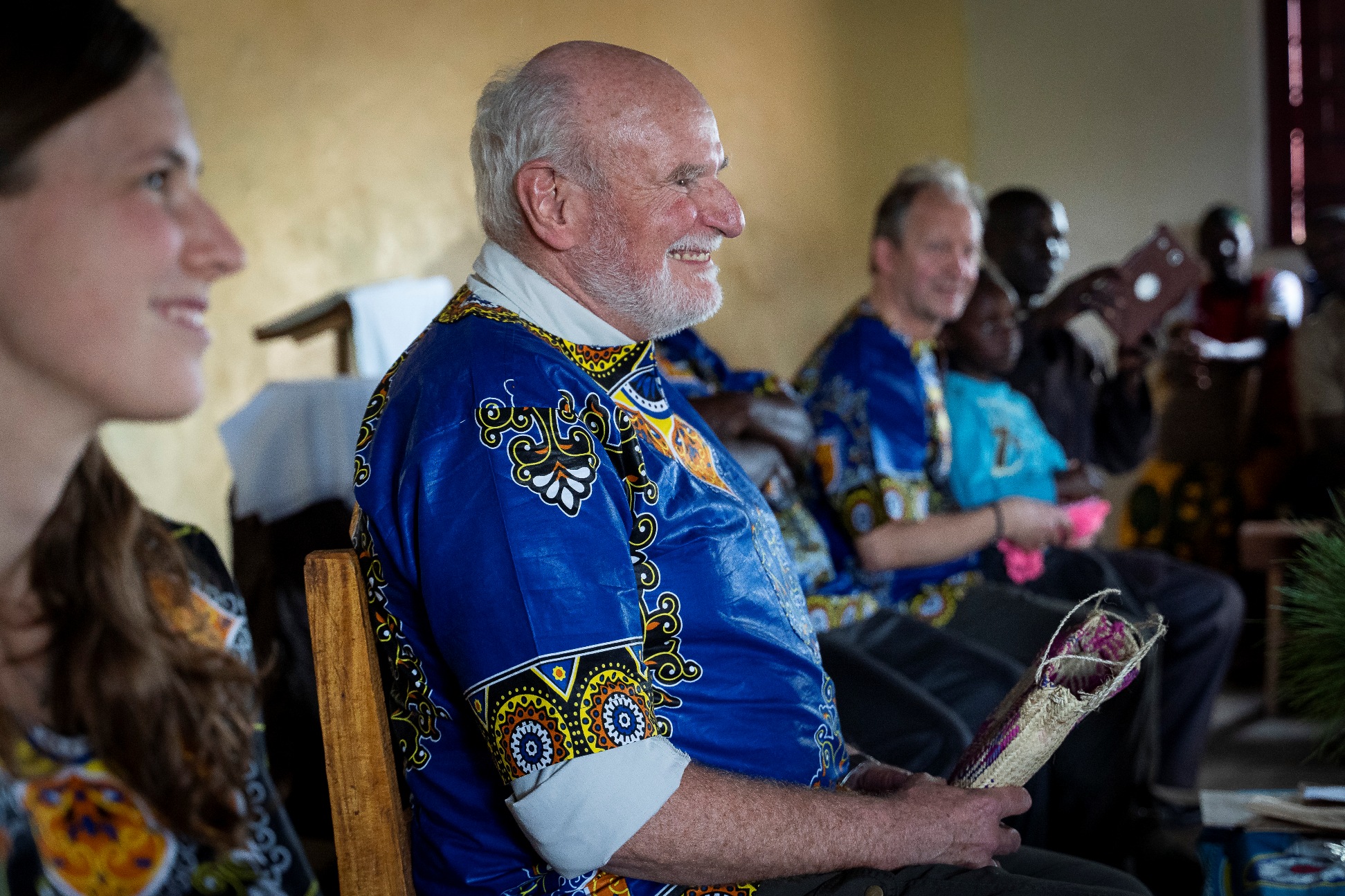 Als der wuchtige Toyota Land Cruiser in den schmalen Feldweg einfährt, tanzt ihm zwischen den Bäumen eine große Gruppe Frauen entgegen. Sie tragen um den Körper geschlungen buntgemusterte Stoffe, die Kangas heißen. Sie singen dem Fahrzeug entgegen. Ein Kind spielt nur mit den Händen auf einer schweren Trommel zum Takt des Liedes. Schon während sie aussteigen, schütteln die Besucher aus dem fernen Deutschland viele Hände, schauen in freundliche Gesichter und werden begrüßt auf Kisuaheli: „Karibu, habari gani?“ – Herzlich Willkommen, Wie geht’s? „Asante, mzuri sana“ – Danke, sehr gut.