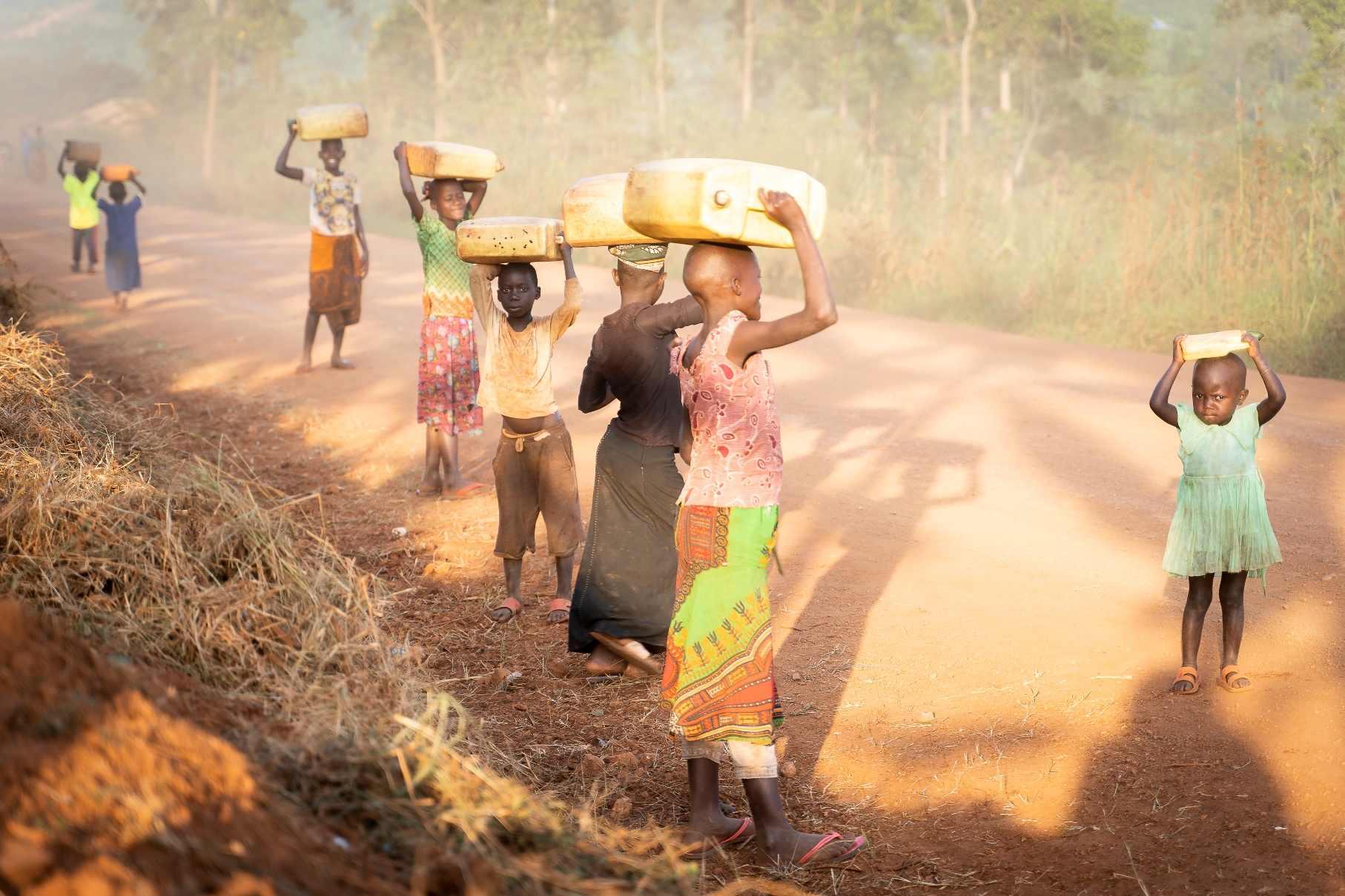 Auf den Straßen in Mabira ist einiges los: Motorräder, genannt „Pikipiki“ aus China für etwa 800 Euro beherrschen die Straßen. Sie werden als Taxis genutzt und transportieren neben mehreren Personen auch etwa Ziegen und Hühner, große Bananenstauden, Möbel oder sogar mal eine Leiche, festgebunden an eine große Holzplanke. Mangels Geldes müssen die meisten Menschen jedoch laufen. Am Nachmittag säumen Kinder mit gelben Wasserkanistern die Straßenränder. Auf ihrem Heimweg von der Schule bringen sie Wasser mit nach Hause – ein kostbares Gut.