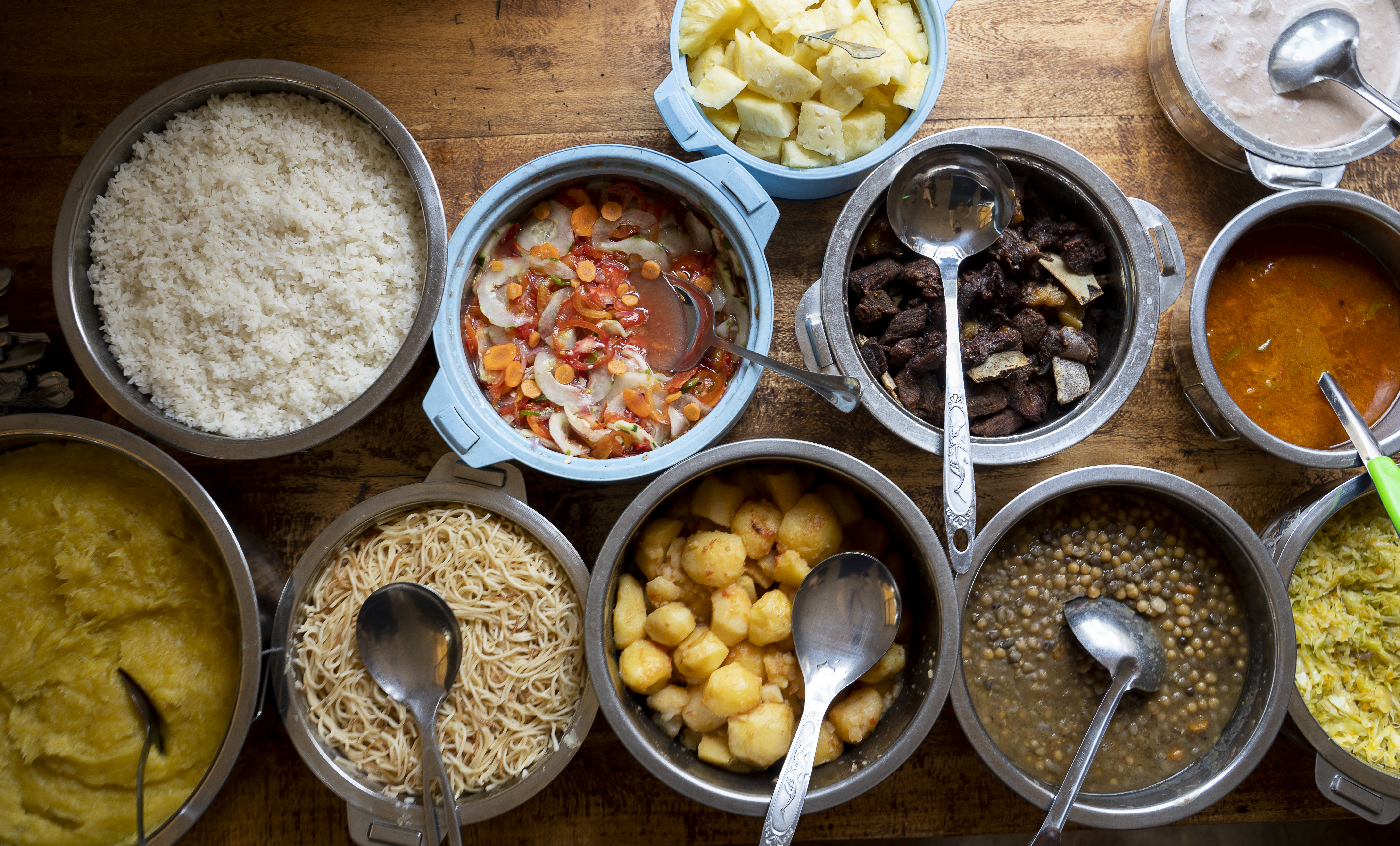 Auch wenn vieles in Mabira fremd und ungewohnt ist, mit dem Essen haben die Besucher keine Probleme. Die Menschen zeigen ihre Gastfreundschaft durch großzügige Mahlzeiten: Kochbananen, Süßkartoffeln, Reis, Spagetti, Gemüse, Avocados, Erdnüsse, Fleisch und Fisch. Frische Lebensmittel von den fruchtbaren Äckern in Mabira, die Shambas heißen, gibt es reichlich. Die überwiegende