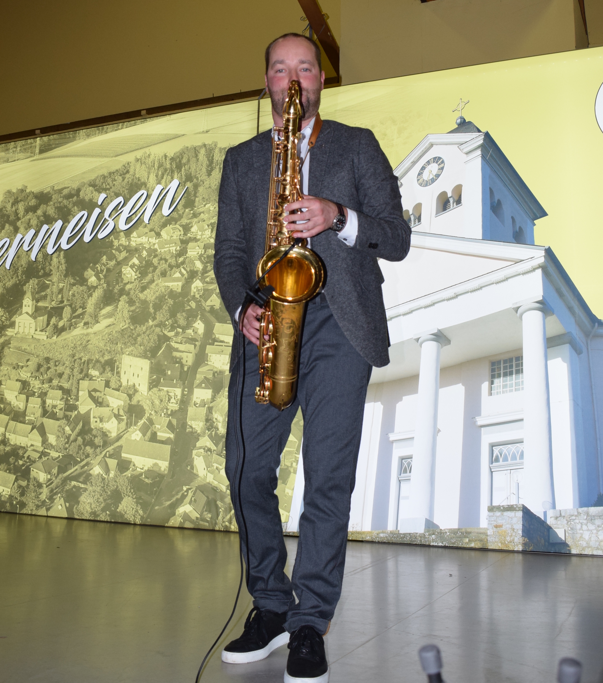 In dem von Dekanin Renate Weigel und Gemeindepfarrerin Annette Blome geleiteten Gottesdienst sorgten der evangelische Kirchenchor unter Leitung von Cornelia Blanche und Bernard Stotz, der Posaunenchor unter Jürgen Müller und Organistin Manuela Dietrich für einen wunderschönen musikalisch-festlichen Rahmen. Musik empfing die vielen Jubiläumsgäste anschließend in der Turnhalle, vornweg Saxophonist Fabian Fischer und später der Männerchor Aartal unter Eberhard Biebricher.