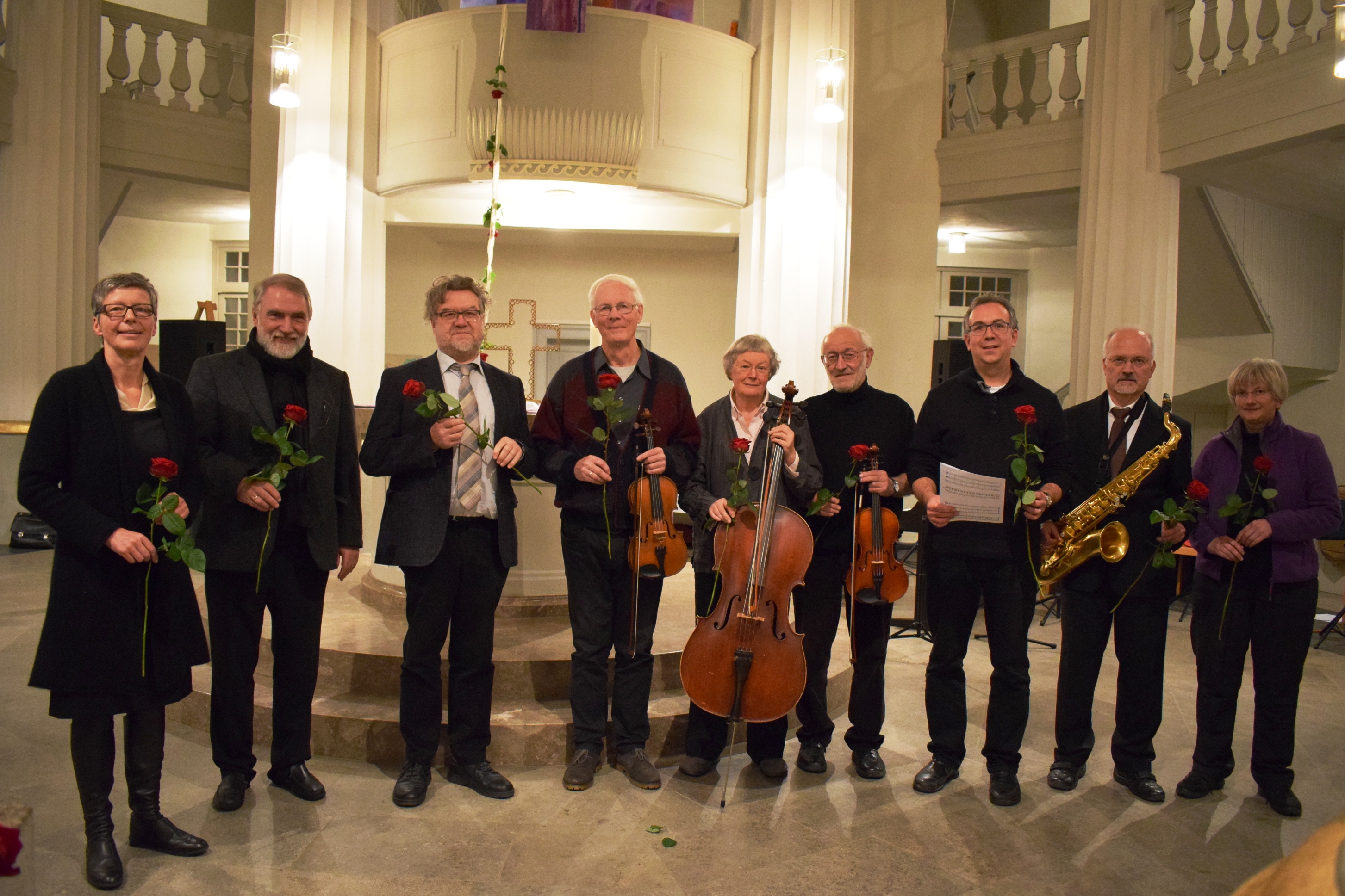 Petra Isselbächer-Krech (Geilnau) und ihre Kollegin Jutta Wilhelm-Montabaur aus Eppenrod beeindruckten mit vierhändig gesetzten Orgel-Kompositionen, darunter die Sonate C-Dur von Johann Baptist Vanhal. Annika Krech und Greta Bruchhäuser machten als eingespieltes Flötenduo auf ihre besonderen musikalischen Ambitionen aufmerksam. Für eine weitere Bereicherung im Programm des denkwürdigen Gottesdienstes sorgte ein „Überraschungs-Projektchor“ aus sieben einfühlsamen Frauenstimmen mit den Liedsätzen „Amazing Grace“ und „Von guten Mächten“. Anschließend waren die Besucher zu einem Stehcafe an die gedeckten Tische im Park der Johanneskirche eingeladen. Willi Schmiedel