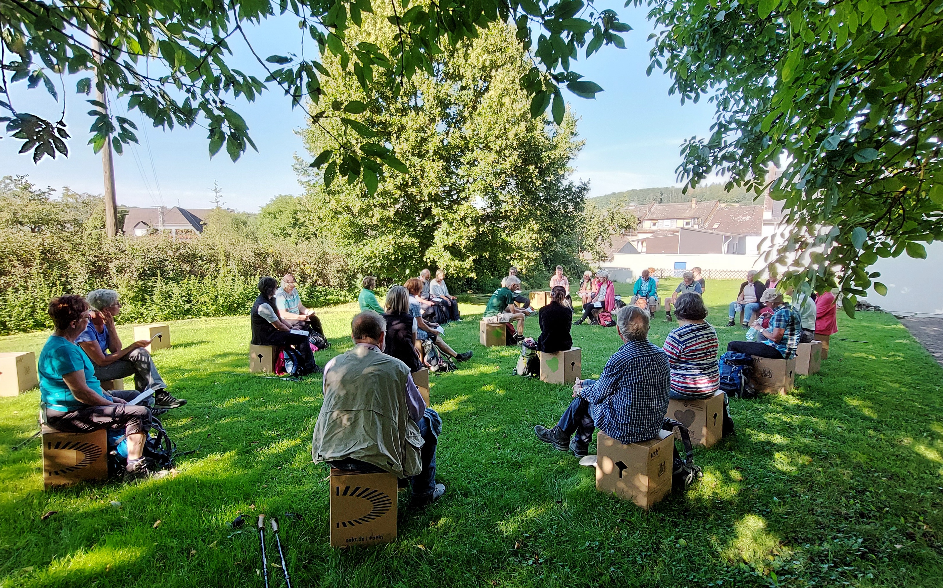 Vielfalt boten die wunderschöne Landschaft und die verschiedenen Orte, die auf der gut 50 Kilometer langen Pilgerroute per pedes angesteuert wurden. Es wurde viel erzählt, gelacht und Freude geteilt. Es gab nachdenkliche, ernsthafte und feierliche Momente. An den ersten beiden Tagen von Weisel nach Miehlen und von dort über das Pohler Limeskastell und die Kirche in den Luthergarten von Katzenelnbogen hatten sich jeweils drei Dutzend Männer und Frauen mit viel Sonne vom Himmel und in den Herzen auf den Weg gemacht; die letzten beiden Etappen nutzten bei etwas trüberem Wetter noch einmal kleinere Gruppen, um die Heimat zu Fuß viel intensiver wahrzunehmen anstatt sie nur zu „erfahren“.