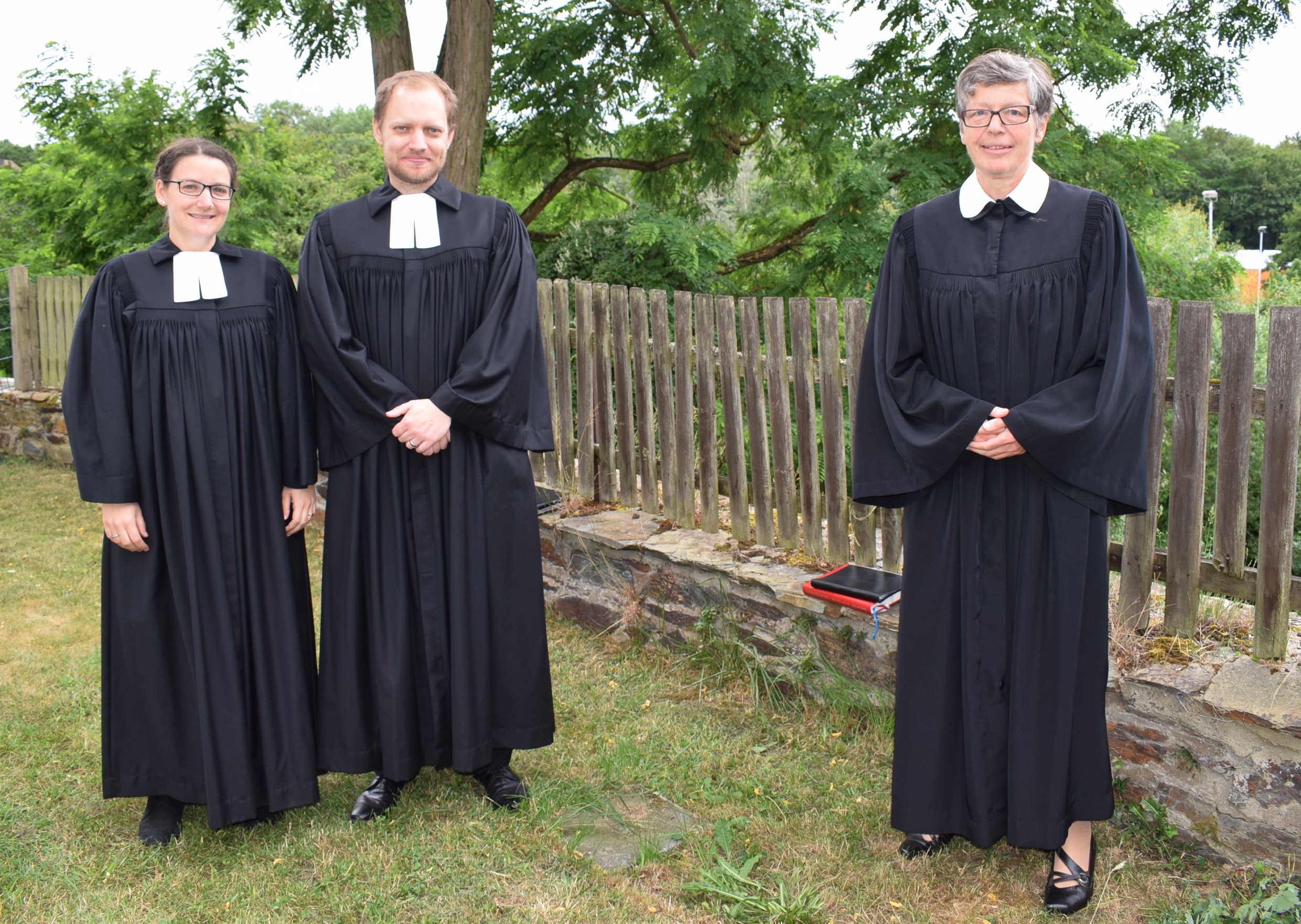 anschließend in ungewohntem Abstand die beiden Pfarrpersonen für ihren Dienst an der neuen Wirkungsstätte. Die animierten in ihrer Predigt dazu, sich nicht ständig mit den eigenen Fehlern, Schuldfragen und Problemen wie in einem Spiegel zu konfrontieren, sondern sie abgeben zu können, damit wieder ein Miteinander möglich ist. Wie schwierig es ist, mit Fehlern zu leben, wissen die Beiden nicht nur aus ihren Spezialvikariaten in Gefängnissen. Vieles könne das Gewissen plagen. Die Folgen von Fehlern blieben und die könne auch Gott nicht abnehmen; aber das Loslassen im Sinne des Predigttextes biete zumindest den Weg in eine gemeinsame Zukunft an, einen barmherzigen Neuanfang.