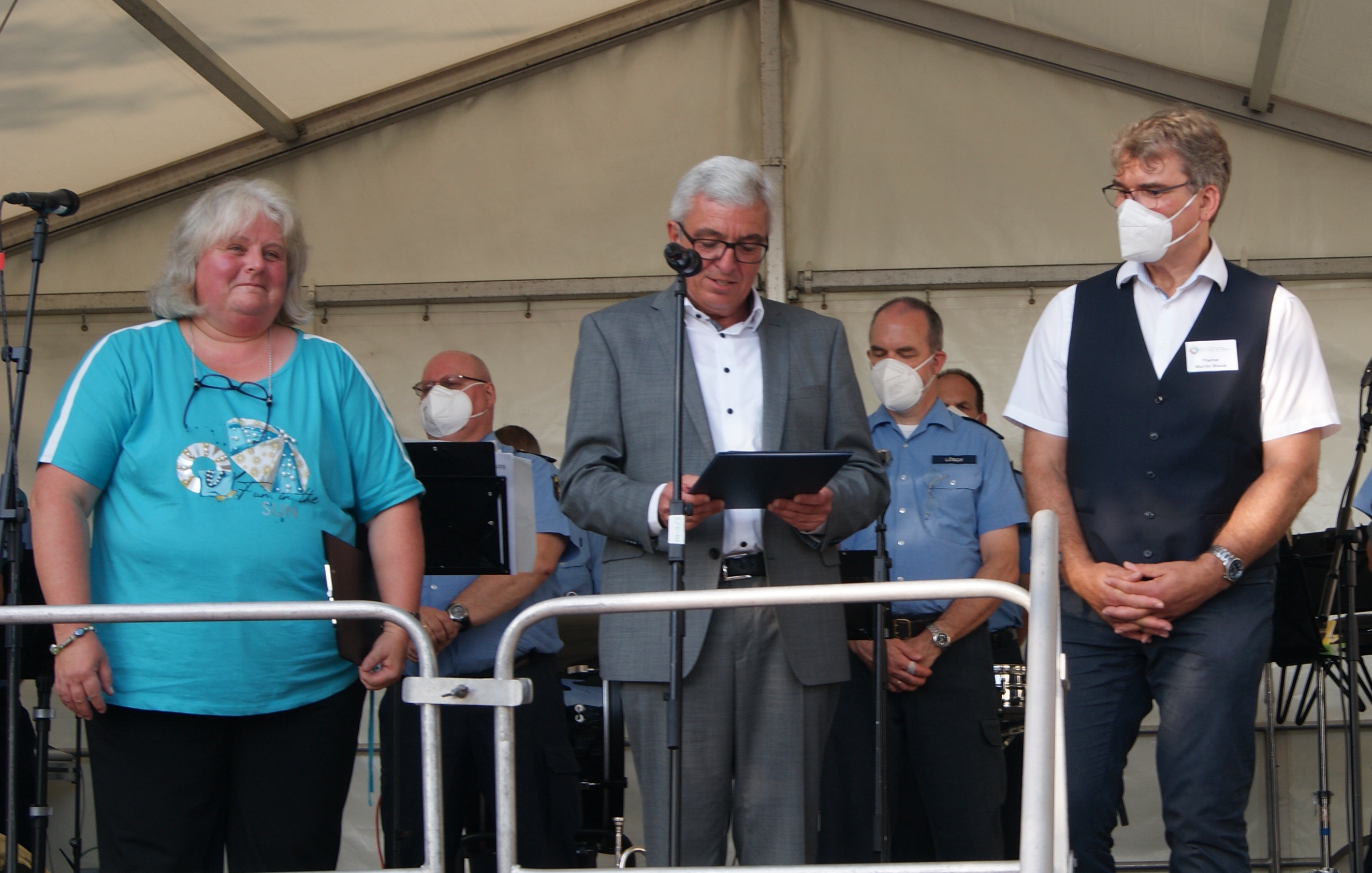 „Jutta Metz ist die gute Seele der evangelischen Kirchengemeinde Braubach“, sagte Lewentz. Dort ist sie seit 1991 Mitglied des Kirchenvorstandes und hat in dieser Funktion unter anderem wichtige Bauprojekte wie die Sanierung der Barbarakirche vorangebracht. Zudem leitet sie bereits seit 1983 den Kindergottesdienst, ist engagiertes Mitglied des Kirchenchors und setzt sich für den ökumenischen Austausch zwischen den Kirchengemeinden ein. „Über das kirchliche Engagement hinaus ist Jutta Metz mit ihrem Organisationstalent kommunal aktiv, etwa beim Winzerfest und beim Weihnachtsmarkt in Braubach. Unser Ehrenamt, unser Land braucht solchen Tatendrang und Optimismus“, sagte Lewentz. KonzertSanierungMen in Blue flach Foto KG„Viele gehen bei ihrem Ehrenamt einem Hobby nach, aber Ehrenamt ist mehr als ein reines Privatvergnügen. Unsere Gesellschaft und Demokratie braucht Ehrenamtliche. Ohne sie würde vieles nicht so gut funktionieren, manches gar nicht“, so der Minister.