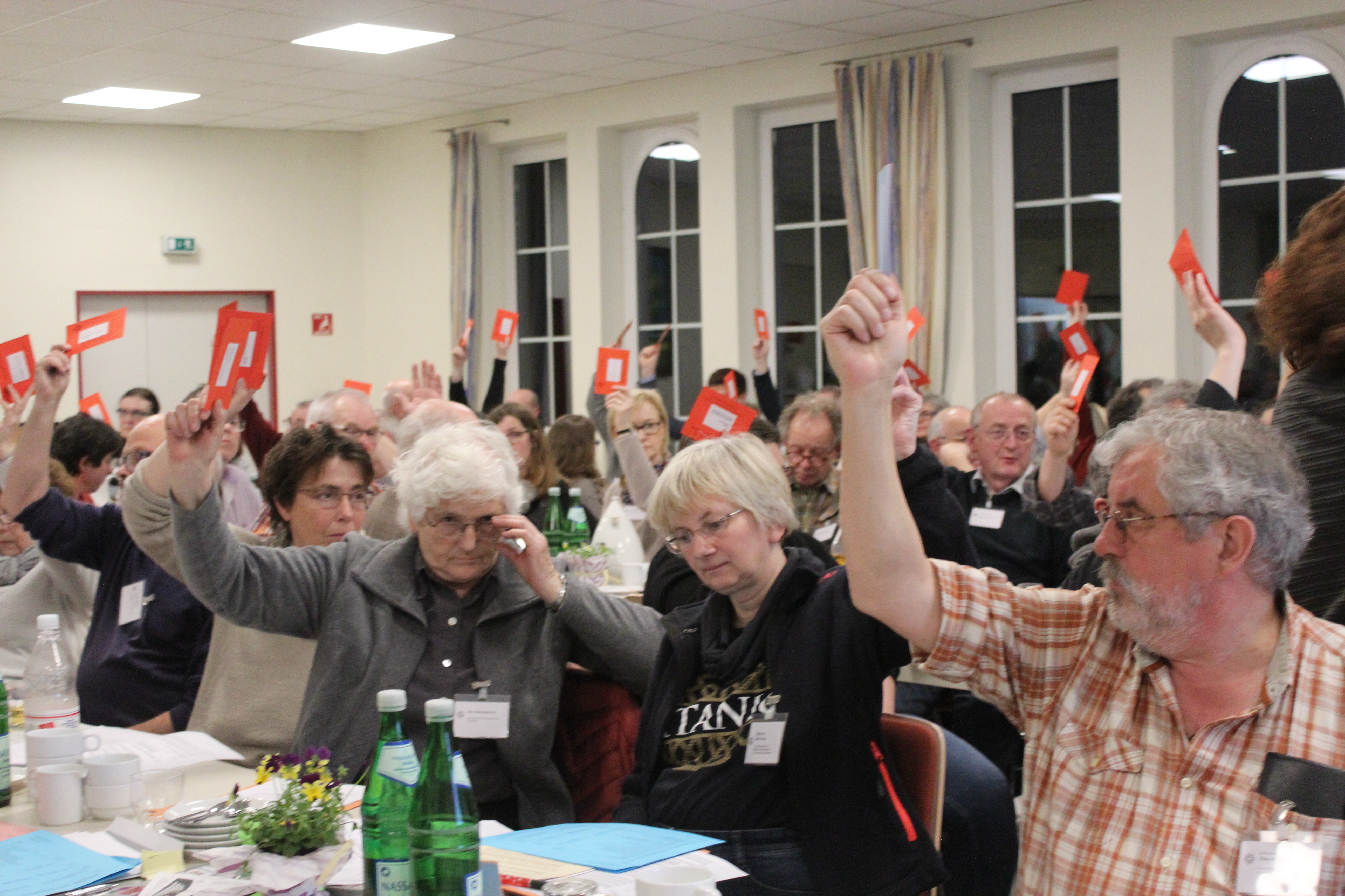 Dann war die Tagung endgültig gerettet. Nachdem der letzte eilends herbeitelefonierte Synodale eingetroffen war, konnte man einen anderen wichtigen Tagesordnungspunkt in Angriff nehmen: die Abstimmung über die Pfarrstellenbemessung, die es auf dem Hintergrund des Rückgangs der Gemeindemitglieder-Zahl um derzeit 1,4 Prozent pro Jahr mit sich bringt, dass die Zahl der Pfarrstellen im Zeitraum Anfang 2020 bis Ende 2024 von 39 auf 34 sinken wird.
